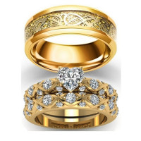 Couple de 3 Alliances en Acier Inoxydable . 1 Alliance pour homme et 2 Bagues pour femme Les bagues pour femme sont serties de belles petites pierres qui apportent du chic et de l'élégance , les bagues sauront vous séduire par leur style
