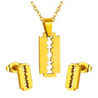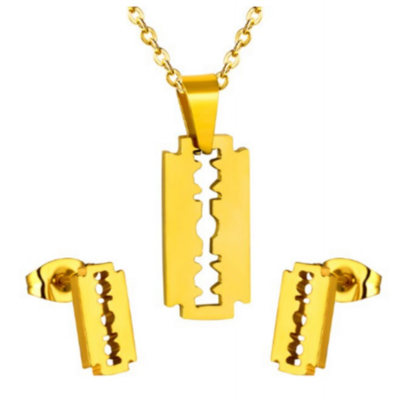Laissez-vous séduire par l'originalité de cette belle parure de bijoux 2 pièces boucles d'oreilles et pendentif avec sa forme libellule . Parure moderne et intemporelle en plaqué or .