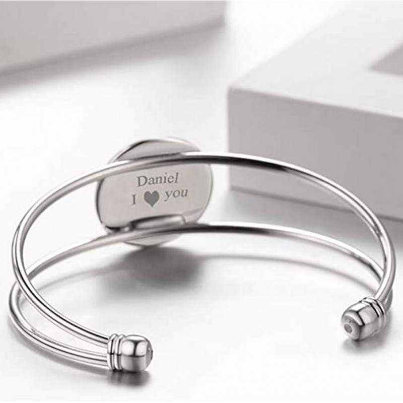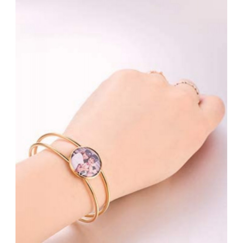 Jolie Gourmette raffinée en Acier inoxydable totalement personnalisable : photo et inscriptions qui apportent une touche d'élégance et glamour. Bracelet Indémodable , intemporel , confortable et agréable à porter.