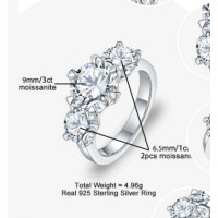 CLARABELLA bague Moissanite Couleur-Blanc, TAILLE DE LA BAGUE-49