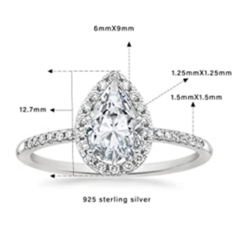 CLARABELLA bague Moissanite Couleur-Blanc, TAILLE DE LA BAGUE-49