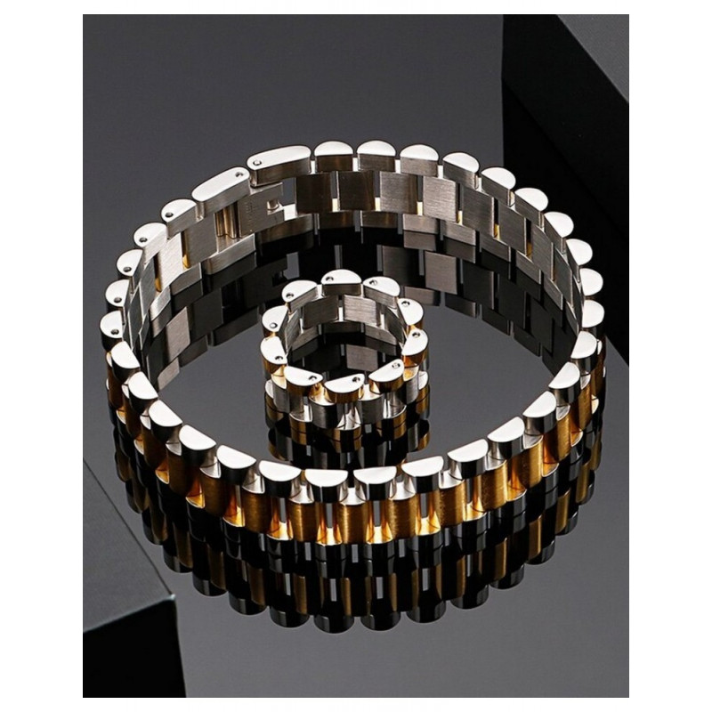 Parure de bijoux 2 pièces bracelet et chaine pour homme . Parure Élégamment confectionné en acier inoxydable, Une chaîne élégante et confortable de 50 cm de long et 13 mm de large . La chaine est dotée d'un fermoir solide pour le maintenir en place .